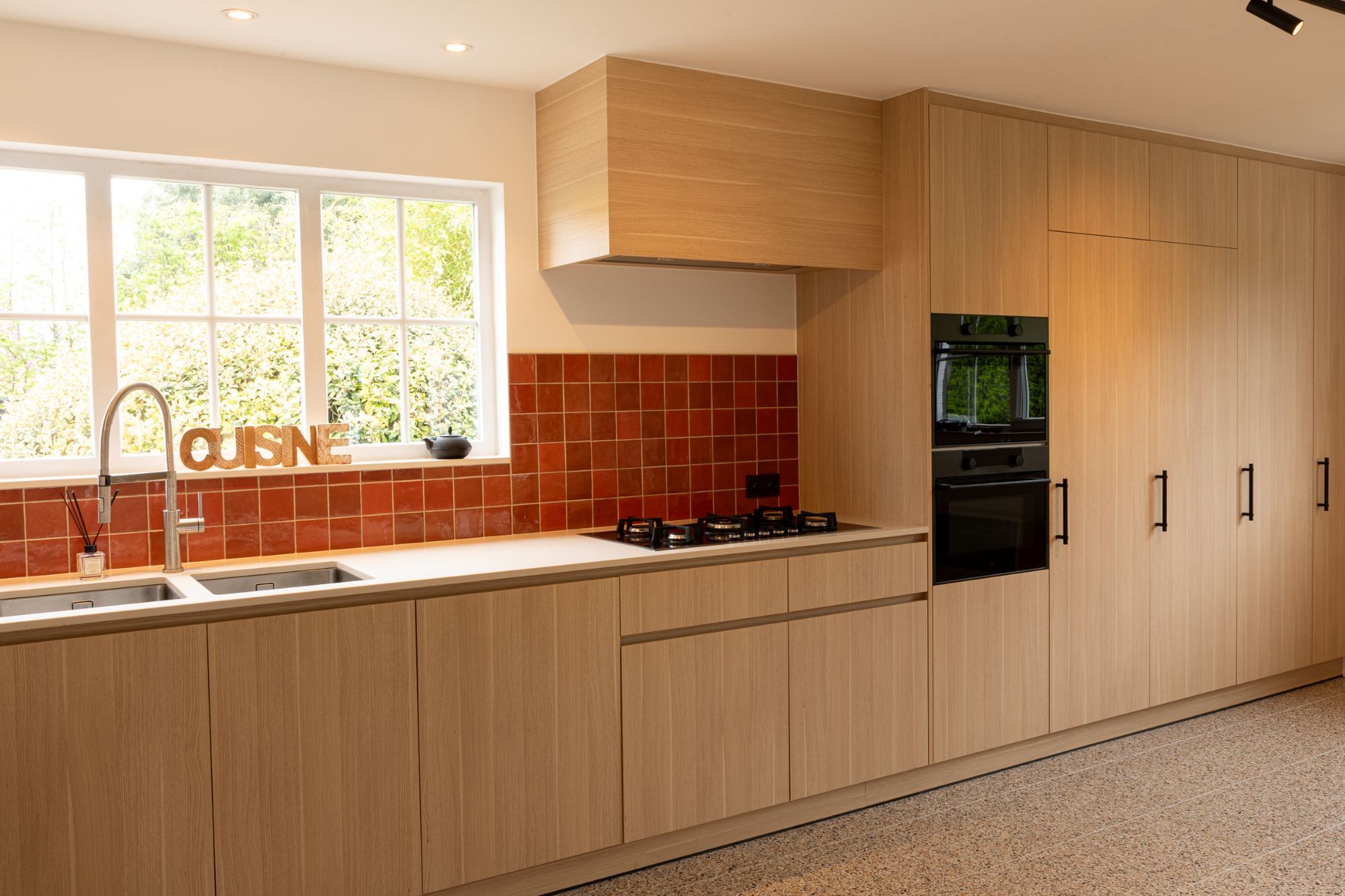 De gezelligheid strekt zich trouwens uit over de hele woning. De keuken is zo ruim en handig ingericht, dat u er gemakkelijk in groep kan koken. Leuk, toch?